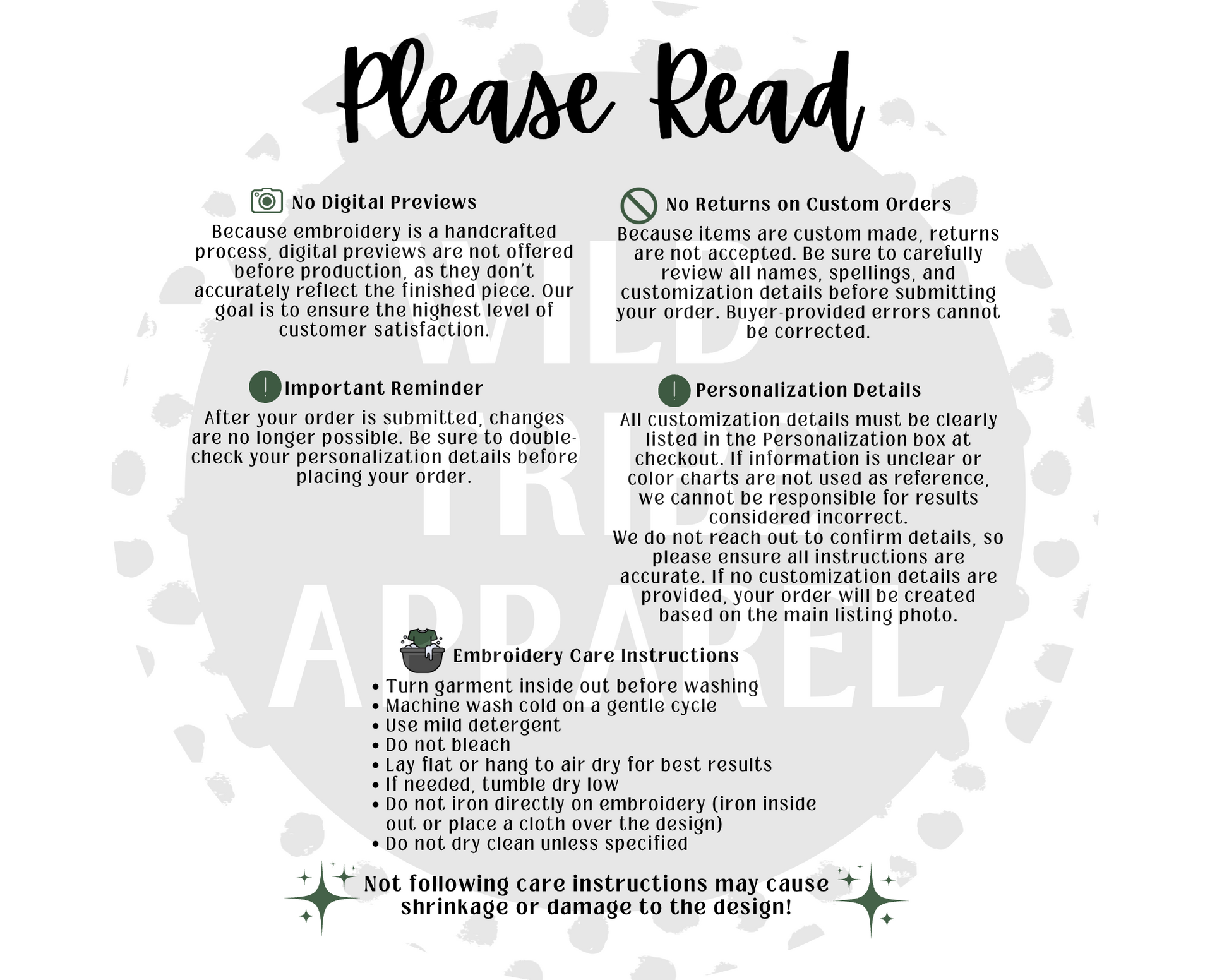 All items are made to order and are final sale. If you experience any issues, please contact us—we’re always happy to help.